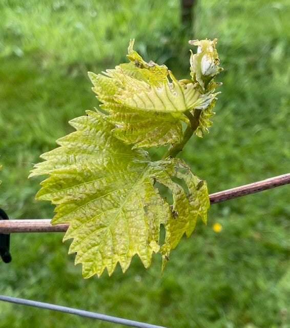 Gisteren troffen een aantal hagelbuien onze wijngaard. Nu, direct nadat de sapstroom aangevangen is, de knoppen gebroken zijn en de eerste bladvorming plaats gevonden heeft, is dat zeer delicaat.